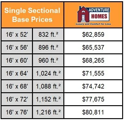 These are our base prices for our Mojave manufactured sectionals or "double wide mobile homes". Manufactured homes are built to the HUD code and go on a pier foundation.